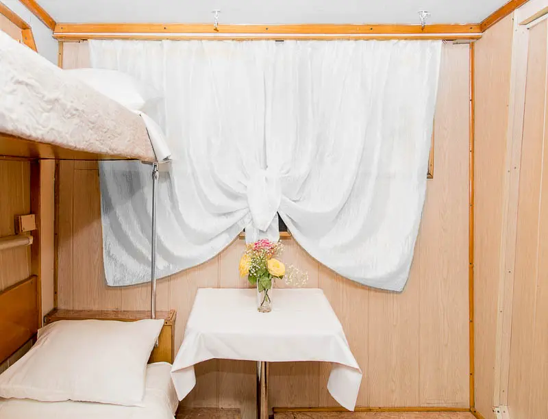 Каюты категории 3А располагаются на нижней палубе, в центральной части судна, 2-х местные, 2-х ярусные, с частичными удобствами.