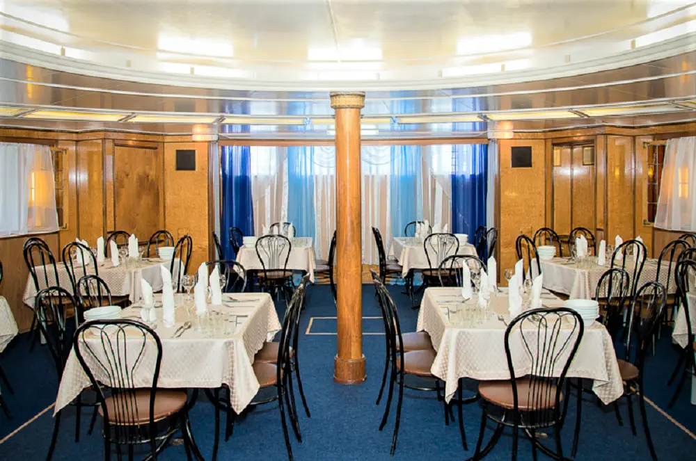Питание гостей осуществляется в двух ресторанах. Один из них расположен на главной палубе, второй — на шлюпочной. Завтрак подается по системе «шведский стол», обед и ужин — по заказному меню.