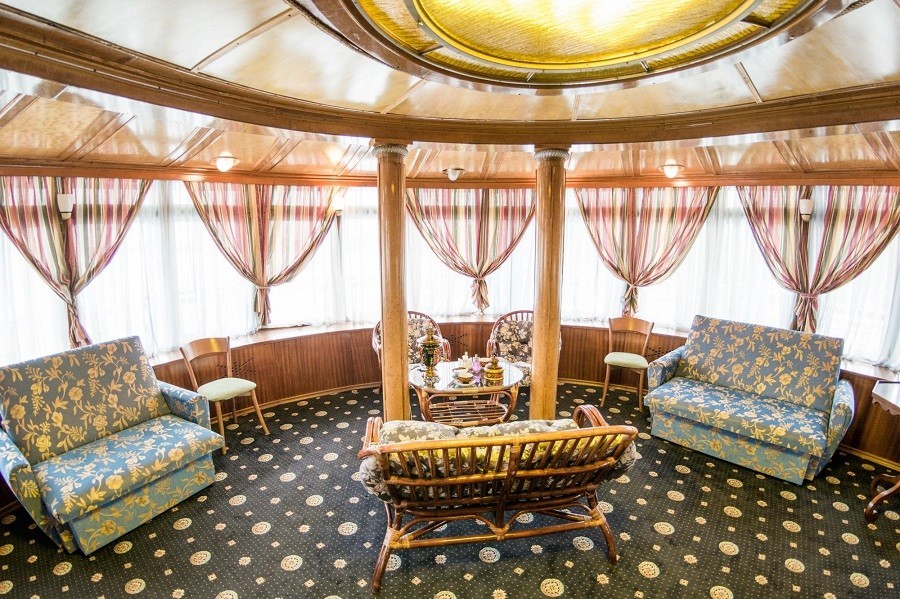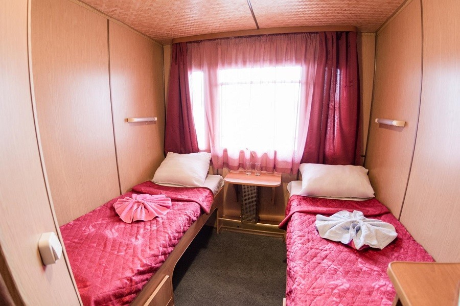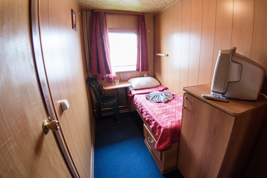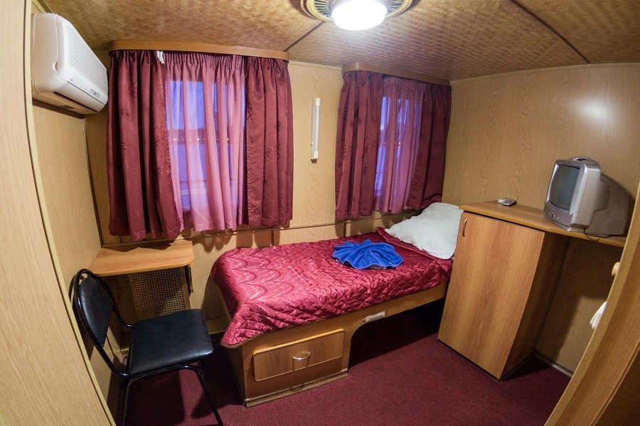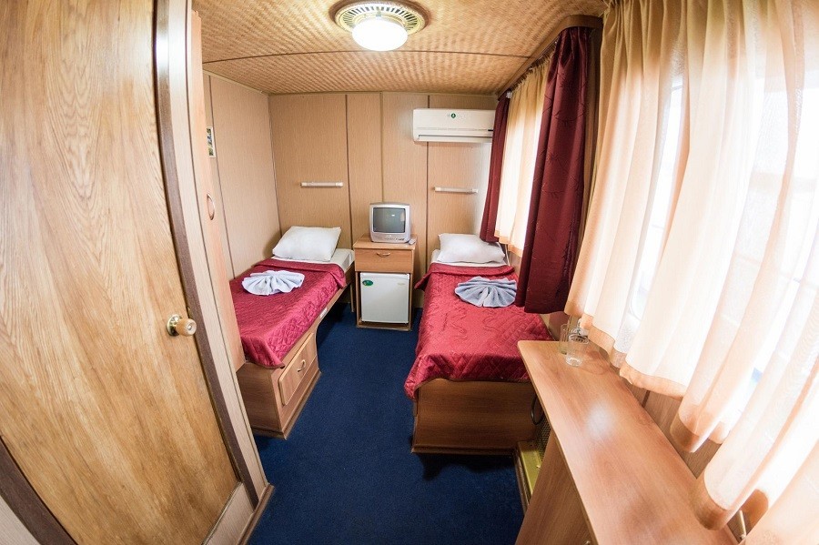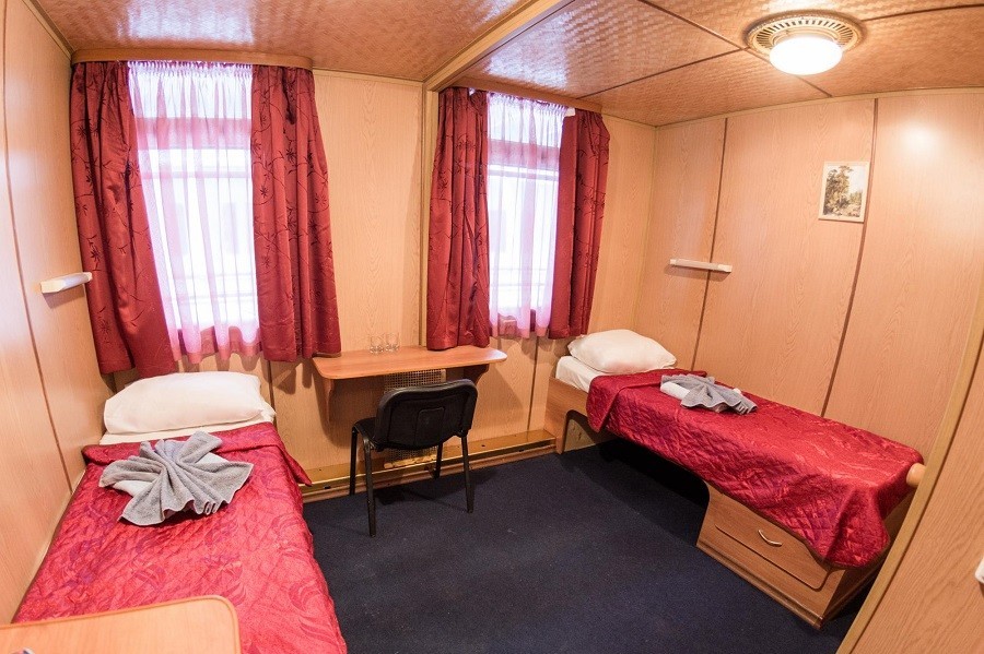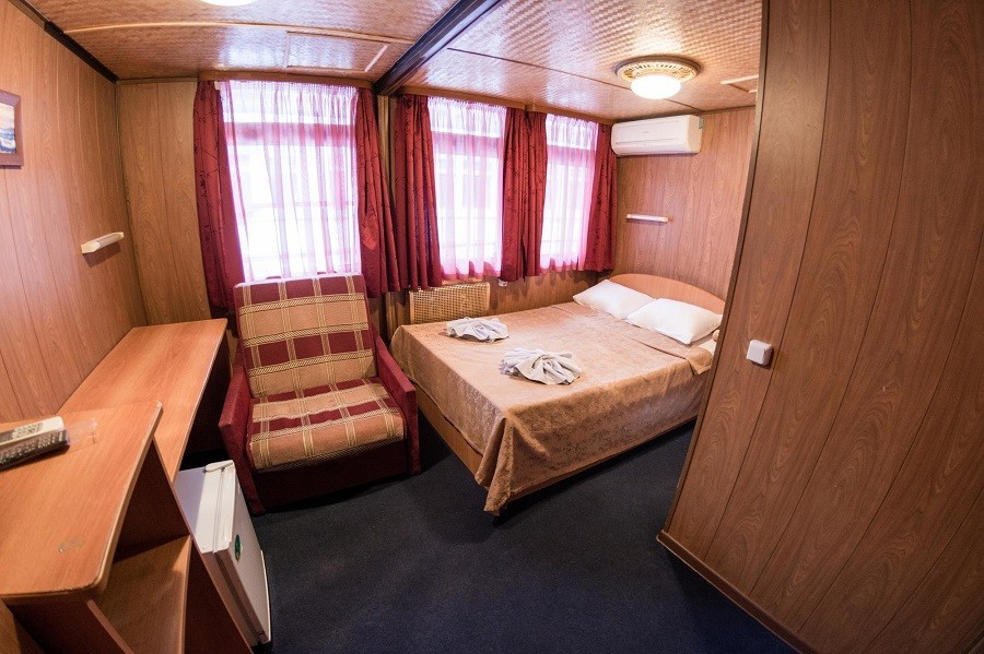 Для комфортного размещения туристов на борту каюты со всеми удобствами. Во всех каютах индивидуальный санблок, холодильник, телевизор (спутниковая система), кондиционер или центральная система вентиляции. Кондиционеры установлены в Президентских Люксах, Люксах, П/люксах, в 2-местных каютах на шлюпочной палубе, 2-местных каютах на средней палубе в носовой части, в 2-местных каютах на средней палубе в кормовой части №322, №323. В остальных каютах общая система вентиляции.